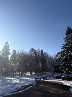 苑内道路の雪は少なめですが朝夕は凍結しますのでタイヤの準備にはお気をつけ下さい。