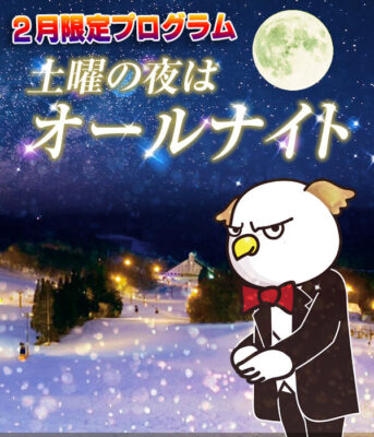 鷲ケ岳スキー場では、「2月限定プログラム土曜の夜はオールナイト」を開催中です。